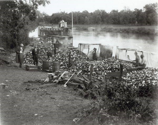 Many individuals along the Fox river caught clams to add a little cash to their pockets. There was a thriving business activity of clamming located on the banks of river near Princeton. The clams were first processed into rough buttons and then finished off in exquisite detail and polished. The final process was done in Berlin in a building owned by Nighbor Fur Company. Most of the buttons from the Fox River were shipped overseas and sold on the European market. The quality of the buttons from the Fox River far exceeded other sources for the buttons.
