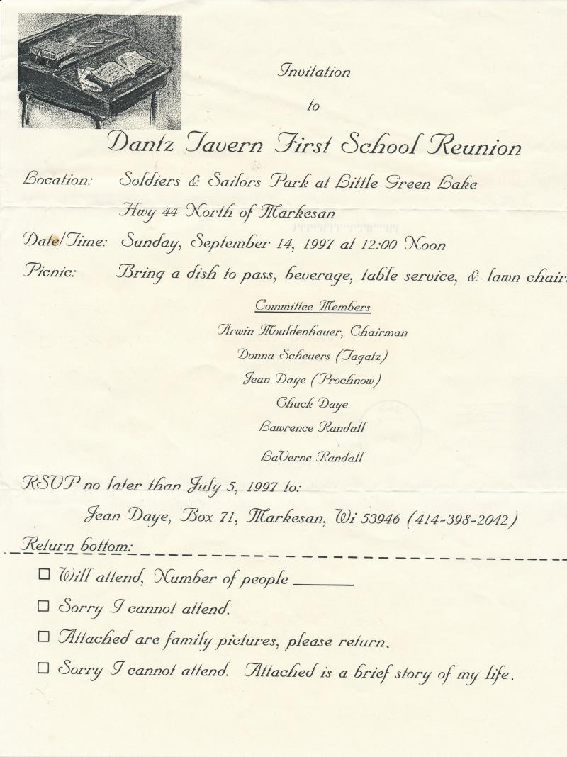 A good number of former students of Dantz Tavern School came together to share memories of their time at the school. Reunion was September 14, 1997.
