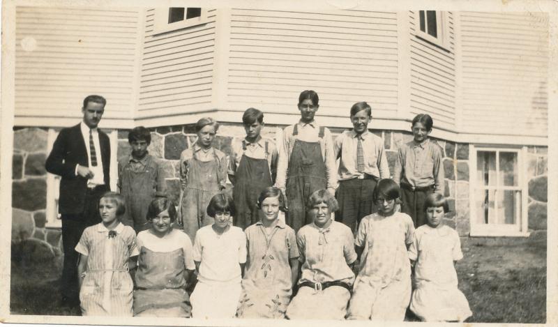 Ed Buchholz, teacher, with his students. Circa 1919.