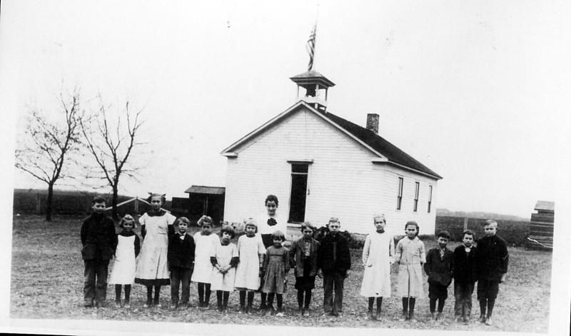 According to Jerry Boelter, the school built in 1919 closed in 1963 when he was in the fourth grade. Faith Lutheran Church purchased the school building and held services in it until a new church and school were constructed on Hwy 73 south of Manchester. The school was sold and is now the residence for Mark Rude.