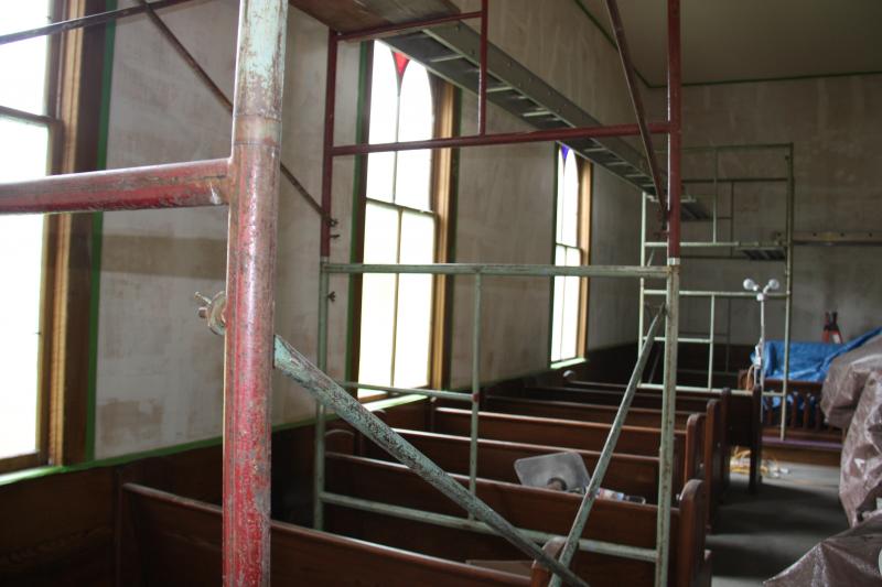 In May of 2014, the Marquette Historical Society made major improvements to the interior of the Church Museum. Old, moldy wall paper was removed, new plaster applied on the walls and celing along with a fresh coat of paint.